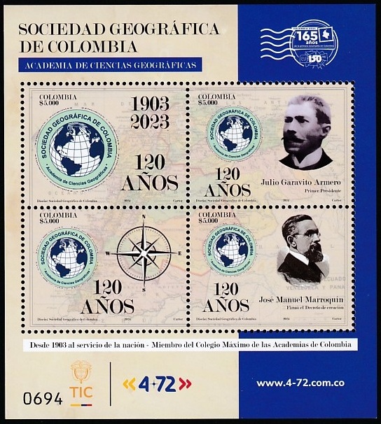 2025 コロンビア地理学会120年、アルメロ(Julio Garavito Armero 1865~1920、コロンビアの天文学者、数学者)、マロキン(Jose Manuel Cayetano Marroquín 1827~1908、コロンビアの政治家)