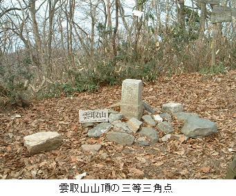 山城五十山には含まれないが、北山ではあまりにも有名だ。山自体に特徴があるわけではないが、この山の周辺の渓谷がすばらしく、また市内から気軽に日帰りで行くことができる。花背別所でバスを降り学校の前を通り、スキー場跡の北側にあるはっきりした山道を40分ほど登れば寺山峠だ。花背スキー場は1929年(昭和4)に開業したが、積雪量の減少にともない1989年(昭和64)に閉鎖された。寺山峠から急坂を10分ほど降りると一の谷に入ることができる。これを上流につめると半時間で雲取峠に到達する。雲取峠は古い地図やガイドブックなどにはフカンド峠として載っていることもある。ここには京都府立大学の立派な山小屋がある。この雲取峠のすぐ東にハタカリ峠があって、ここから北へ尾根つたいに桂川上流の黒田までは1988年(昭和63)の京都国体の山岳コースになっていたので踏み跡は残っている。またハタカリ峠から南へは寺山峠まで快適な尾根道があり、途中には京都産業大学の山小屋もある。雲取峠から一の谷を巻くように、南西に尾根筋にそって潅木のなかを歩くと雲取山の三角点911.1メートルに到達する。頂上からは桟敷ヶ岳はじめ北山の山なみが望める。帰路は頂上から二の谷または三の谷に、はっきりした道がついており、いずれをとっても1時間程度で一の谷に合流する。二の谷のなかほどには立命館大学の山小屋がある。雲取山は何度も登ったが、直近では2013年(平成25)5月、確認ずみ。