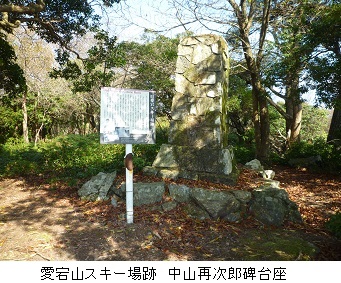 京都のスキーでは中山再次郎(1867〜1963)を見逃せない。中山は1900年(明治33)京都府立第二中学校(現在の京都府立鳥羽高校)の初代校長にに就任、スポーツによる青少年の心身修養に力を注がれ、伊吹山や愛宕山のスキー場も開拓された。愛宕山スキー場跡には、いまも中山の胸像があった台座が残存されている。愛宕山スキー場は1928年(昭和3)に愛宕神社北西部に開設されたが、第二次大戦中に閉鎖され、中山の胸像本体も供出された。