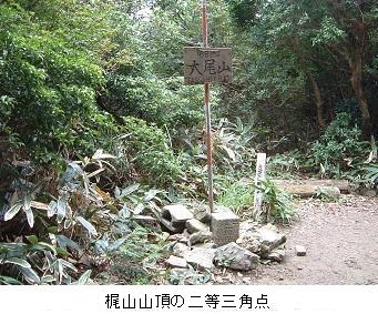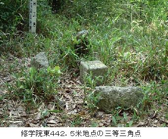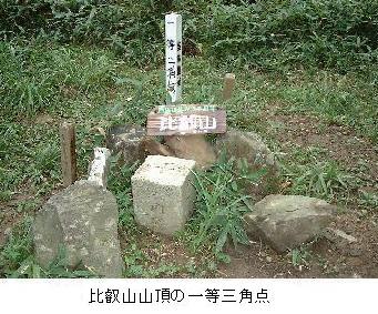 平安時代から山といえば比叡山といわれているくらい、なじみのある山なのであらためて言うまでもない。しかし本書で扱う比叡山系というのは、北は滋賀途中から南は、わが家ちかくの北白川にいたるまで広範囲にわたり、あまり知られていないところが多い。山城五十山に該当する山は北から途中の南にある魚の子山552.4メートル、梶山681.4メートル、水井山794.1メートル、大比叡848.3メートル、修学院の東にある無名(点名は掛橋)442.5メートルの5山だ。どの三角点も滅多に人の行かないところにある。比叡山(大比叡)の三角点でさえ見た人は少ない。比叡山は京都市街のどこからでも見えるが、ピークは二峰あり、二万五千分一の最新の地形図では西は四明岳,東は大比叡と表示されている。しかし地元では大比叡とはいわず、かつては大嶽とか叡南嶽(えみなみだけ)と呼ばれてきた。大比叡に対して小比叡(おびえ)は比叡山の東、日吉神社の北にある八王子山などの総称としてつかわれているようだ。[白洲正子「近江山河抄」講談社文芸文庫 1994 p81]