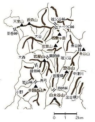 (桟敷ヶ岳 895.8メートル、惣谷山 633.1メートル、白木谷山 565.6メートル、半国高山 670.0メートル、岩屋山 649.1メートル)
