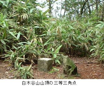 この山は持越峠のちかくにあるので持越山と呼ばれたこともあったが、いつの間にか白木谷山と地図に載っていた。雲ヶ畑の白梅橋の停留所でバスを降り、川を渡ると持越峠へ行く道がある。この道のついている谷をトチノキ谷という。いまはこの谷を巻いて真弓へぬける車道がついているので、旧道はやや歩きにくい。15分も歩けば難なく峠に着く。峠からは真弓に下る車道と山腹ぞいに南へ行く車道があるが後者はすぐに行き止まりになる。峠からはすぐに南の尾根に取りつき踏み跡をたどることになる。尾根筋の踏み跡は途切れそうなところもあるので左右に注意して歩くと峠から半時間くらいで三角点に到達する。高低差が少ないのでよほど注意していかないと三角点を通りすごしてしまう。三角点からの展望はない。踏み跡は標高点511メートルあたりで非常に分かりやすくなり、明瞭な道が氷室までつづいている。以上は1996年(平成8)4月に確認ずみ。