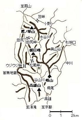 (高雄山 428.6メートル、峰山 537.6メートル、朝日峰 688.3メートル、鷹ノ巣山 654.0メートル)