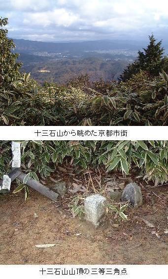 十三石山に登るには氷室を起点にすればよい。氷室へは前出の城山を経て車道が通っているし、また杉阪から氷室川にそった道を行ってもよい。後者は1997年(平成9)時点では完全に車道が氷室まで入っていないので、20分ほど歩かねばならない。また1995年(平成7)に京都一周トレイル北山西部コースが整備され、上賀茂の山幸橋から氷室小峠を経て1時間半程度で氷室へ来る人も多くなった。さらに私のとっておきのコースとしては京都ゴルフ場の西コースにある尺八池から船山の北へ登り林道を氷室へぬける道がある。途中には北山台杉の植林地があり眺めもよく快適だ。