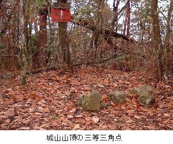 鷹ヶ峰から杉阪までは、せまい車道がついていて周山街道のバイパスとしてよく利用されている。鷹ヶ峰から半時間ほど車道を歩くと東側に潅木で覆われた小高い山が見られるが、これは釈迦谷山といい標高291.2メートルの三角点がある。頂上まで車道から10分の道のりで踏み跡は明瞭についている。頂上からの展望はない。釈迦谷山は標高400メートルに満たないため山城五十山には入れていない。さらにすすむと堂の庭というところがあり、少し先が京見峠で峠にふさわしく、いまでも茶店があり甘酒など飲むことができる。名前のとおり京都市街の眺めが非常によい。京見峠は室町時代から山城と丹波、若狭を結ぶ通路として旅人の往来があったといわれている。ここまでは徒歩ならば千束から旧道を登って来るほうが速い。堂の庭をすぎると道はいずれも車道で二つに分かれる。城山へ行くには右の氷室方面への道をとる。やがて京都市防災無線中継局があらわれる。ここで細い道が三角点の西をまわって氷室へ行くようになっているが、これは旧道で、もう少し本道をすすみ西側の、よう壁がなくなる地点から西側の山に入り、踏み後にそって登ると本道から10分たらずで三角点に到達することができる。頂上は潅木に覆われ展望はない。以上は2000年(平成12)1月に確認ずみ。城山には昔、明智光秀の砦があり、そのため城山といわれているが、山頂付近は城跡と思われるような段差の多い地形だ。