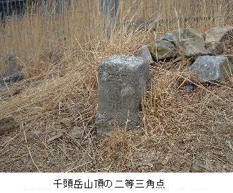 牛尾観音までは音羽山のところで言ったように、ハイキングコースで京阪四宮から1時間あまりかかる。さらに牛尾山の頂上まで急坂を登る。尾根に出たところの北は音羽山への尾根筋で、南が牛尾山のパノラマ台になっている。ここから東南へ尾根つたいに、よく踏まれた道があり、道は防火のためか幅10メートルほどで樹木が刈り取られている。パノラマ台のすぐ北にも、またパノラマ台から東南の尾根筋を10分ほど下ったところにも石山方面へ降りる道があり、道標が立っている。この分岐点をすぎ、上がったり下がったりの尾根道を行くと道幅もかなりせまくなり、潅木の茂ったピークに達する。このピークを千頭岳東峰と呼んでおり、三角点はここにはないが、建設省(現国土交通省)の無線反射板が立っている。この東峰で道は二つに180度に分かれ、東は464メートルの大平山をへて石山へ降りる道になっており、また西は三角点のある千頭岳西峰へつづいている。東峰から西へ急坂を下り、また登ったところの送電鉄塔の側から北へ登るとまた巨大な鉄塔が二基ある。なにしろこのあたりは、やたらと鉄塔が多い。二基ある鉄塔の東の鉄塔の東側に三角点がある。頂上からの展望は京都市南部と木々の間からわずかに琵琶湖が望める。